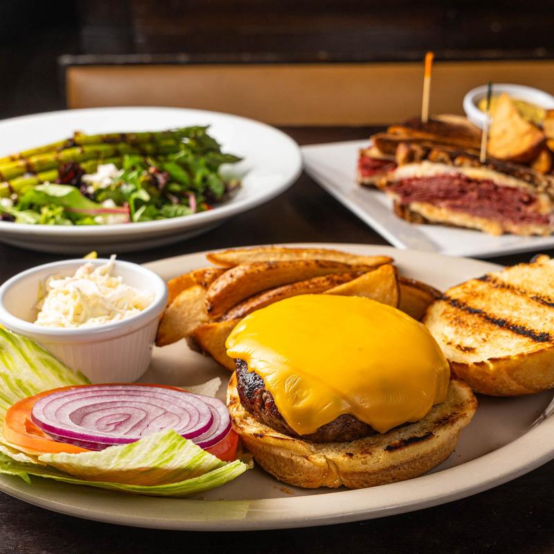 All burgers come with lettuce, tomato and raw onion. Served on a toasted seedless roll with steak fries, coleslaw and a pickle.